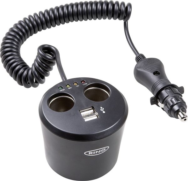 USB Adapter mit Normstecker und 2-fach Normsteckdosen (max. 10 A) zum Anschluss von 12 V Verbrauchern mit zusätzlichem 2-fach USB-Ladeanschluss (2 A). Integrierte Batteriezustandsanzeige und Warnung bei nicht ausreichender Ladung durch die Lichtmaschine.