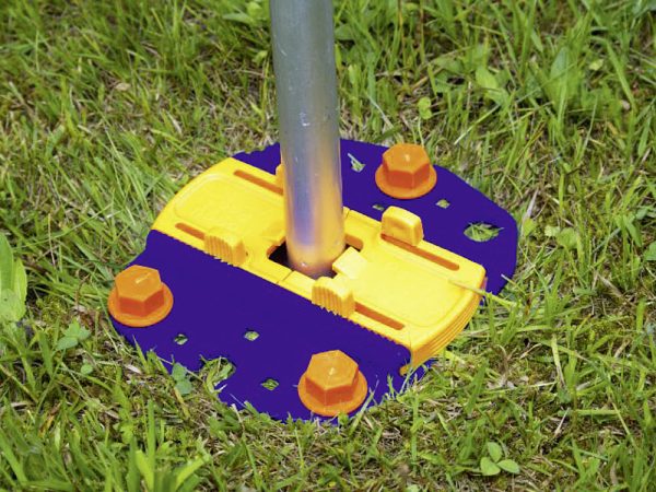 Anker Platte Fix & Go für Markisen, Zeltstangen oder Sturmgurte aller Art. Markisenfüße oder Zeltgestänge sind sicher zwischen den Platten fixiert und können nicht im weichen Boden versinken oder abheben. Der höhenverstellbare Haken des Schraubsystems fixiert die Platte, auch wenn der Hering nicht ganz eingeschraubt werden kann. Das Einfahren der Markisen ist möglich, so oft man will, durch einfaches Öffner der Schieber.