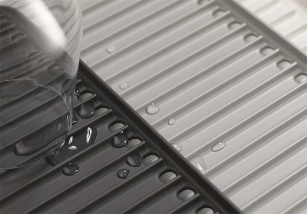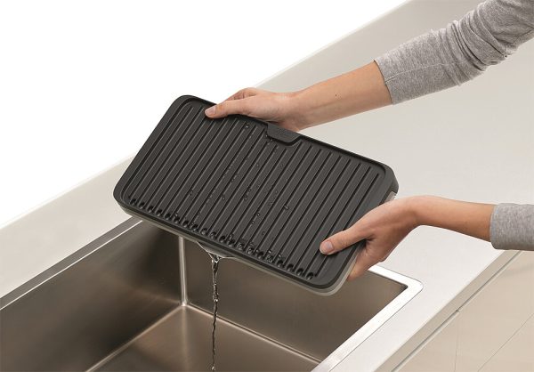 - Gerippte Oberfläche lässt Wasser aus dem Spülgut ablaufen