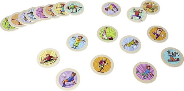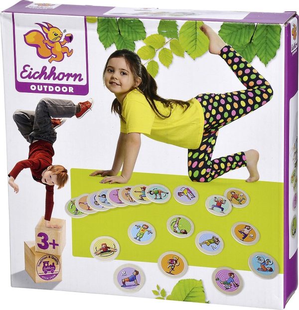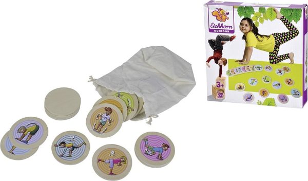 Das Eichhorn Bewegungsspiel besteht aus 20 bunten Spielscheiben aus Holz, die mit lustigen Motiven die Kleinen zum Bewegen, Tanzen, Turnen und Auslassen animieren. Das Set verbindet damit Spiel und Sport. Die Spielscheiben deuten den Kindern bestimmte Übungen und Bewegungen an, die sie spielerisch nachahmen und umsetzen sollen. Der eigenen Kreativität sind dabei selbstverständlich keine Grenzen gesetzt. Zum Aufbewahren liegt dem Spieleset ein Stoffbeutel bei, in dem alle 20 Teile problemlos verstaut und überall hin mitgenommen werden können. Das Bewegungsspiel ist das perfekte Spielzeug für Kinder ab 3 Jahren und verspricht frischen Wind im Garten, Park und in jedem Urlaub.