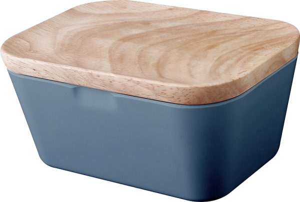 Der Deckel dieser Butterdose ist aus Bambus und das Unterteil aus dem hochwertigen Kunststoff Melamin.