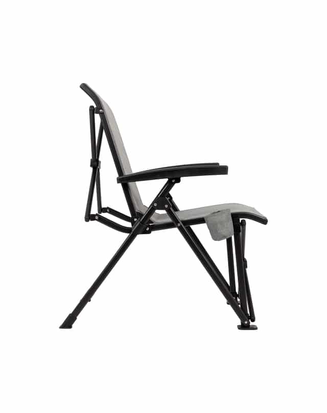 Ein sehr stabiler Klappstuhl aus der Industrial Kollektion. Der stilvolle Stuhl hat einen robusten Sitz und einen leichten und sehr stabilen Aluminiumrahmen. Mit seiner hohen Rückenlehne, den stabilen Armlehnen und der robusten Polsterung bietet dieser Stuhl ein gut stützendes und sehr bequemes Sitzerlebnis. Ein Becherhalter ist im Lieferumfang enthalten und lässt sich einfach am Gestell befestigen. Leicht zu falten und einfach zum Campingplatz mitzunehmen. Der Stuhl wird mit einer praktischen Tragetasche geliefert.