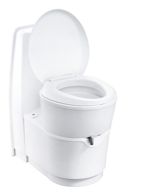 Die C220-Cassettentoilette ist mit einer Toilettenschüssel ausgestattet, die man auf der Toilettenbasis um 2 x 90 ° drehen kann. Das Niederdrücken des Sitzes verriegelt die Toilettenschüssel in der gewünschten Position. Die C220-Cassettentoilette kann freistehend an allen Außenwänden des Fahrzeugs montiert werden. Da Sie die Toilettenschüssel vor der Benutzung drehen können, erfahren Sie optimalen Komfort und verschwenden keinen Platz.