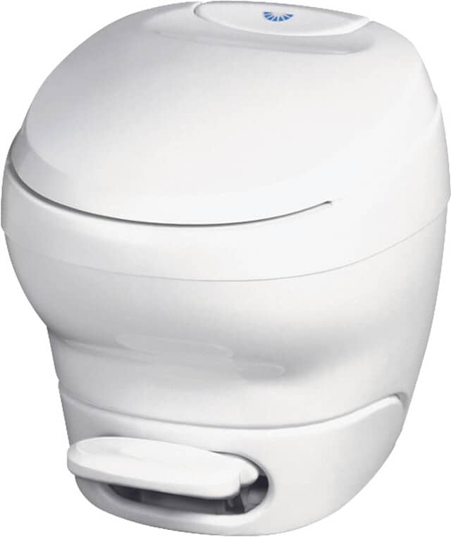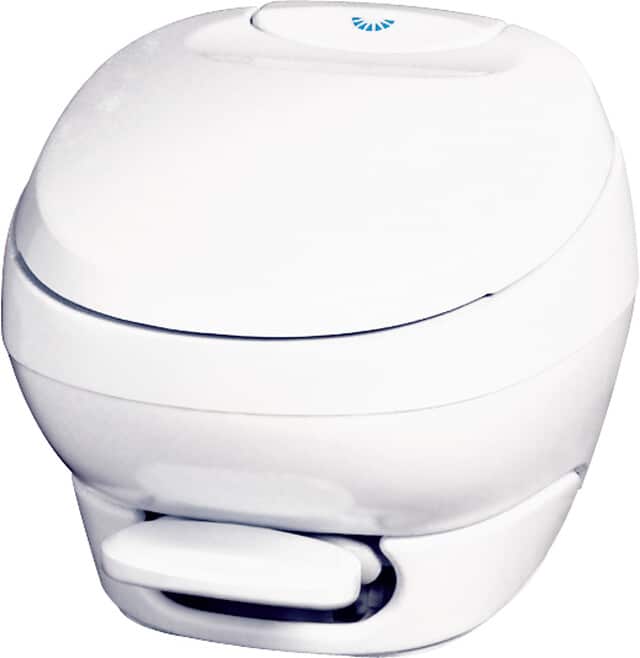 Thetford bietet auch Einbautoiletten für Fahrzeuge an, die über einen fest eingebauten Fäkalientank verfügen. Das Spülsystem dieser Toiletten lässt sich einfach mit dem zentralen Wassertank des Fahrzeugs verbinden.