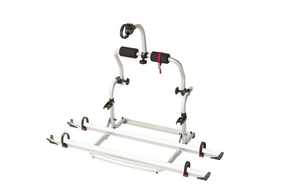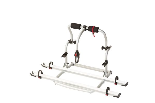 Der kompakte Fahrradträger. Durch die kleineren Montagepunkte ist eine flexible Anbringung möglich. Die solide und leichte Struktur aus eloxiertem Aluminium kann von 40 cm auf 50 cm reguliert werden. Erweiterbar auf 3 Fahrräder.