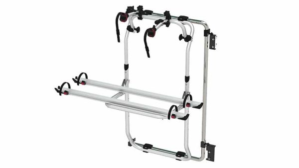 Der Fahrradträger für den Transport von 3 Fahrrädern an einem Ducato mit doppelter Hecktür.