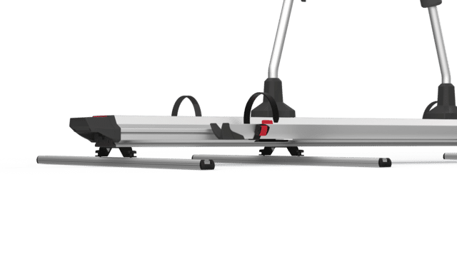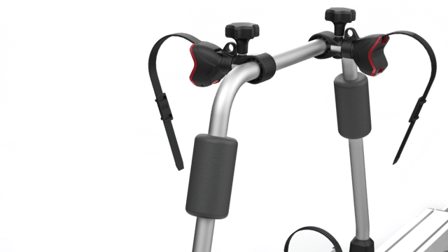 Die obere Gelenkstruktur ermöglicht ein genaues Einstellen der Position der Bike-Block zur Befestigung der Fahrräder, das praktische untere Spannsystem ermöglicht eine sichere Befestigung des Carry-Bike am Fahrzeug.