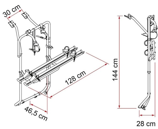 Speziell entwickelter Heckträger für Fahrzeuge mit Hecktüre. Die Montage erfolgt ohne Bohren.