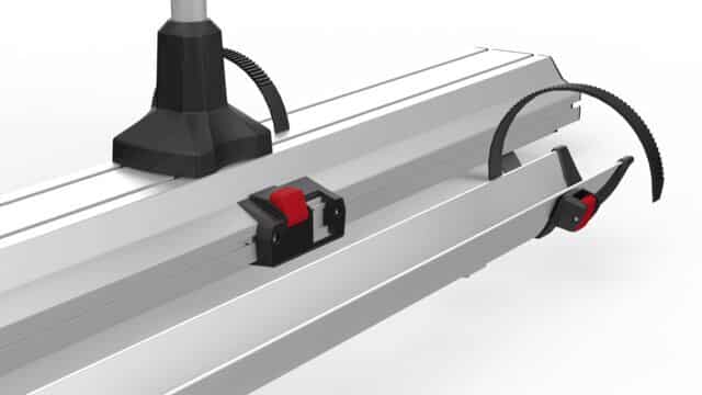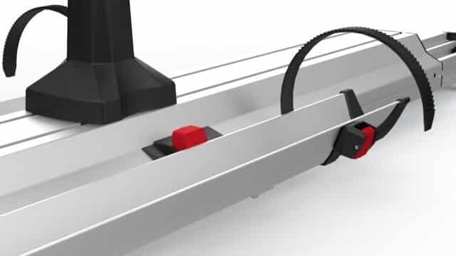 Schiene Plus: Vollständig abnehmbar mit nur einem Klick – schafft Platz im Stauraum, wenn keine Fahrräder transportiert werden.