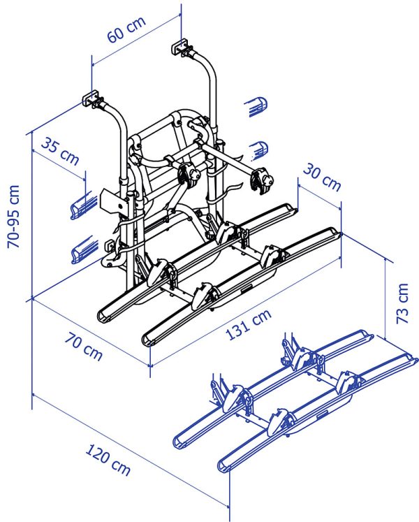 Dank der verstellbaren Radbefstigungen können Sie ganz einfach die perfekte Einstellung für Ihre Fahrräder/E-Bikes wählen. Die stufenlos einstellbaren Radhalter ermöglichen das Befestigen von fast jedem Fahrrad/ E-Bikes auf dem Träger.