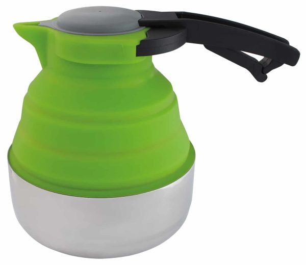 Faltbare Wasserkessel aus Silikon und Edelstahl. Spezielle Griff macht es leicht, den Deckel zu öffnen und Wasser ausgießen.