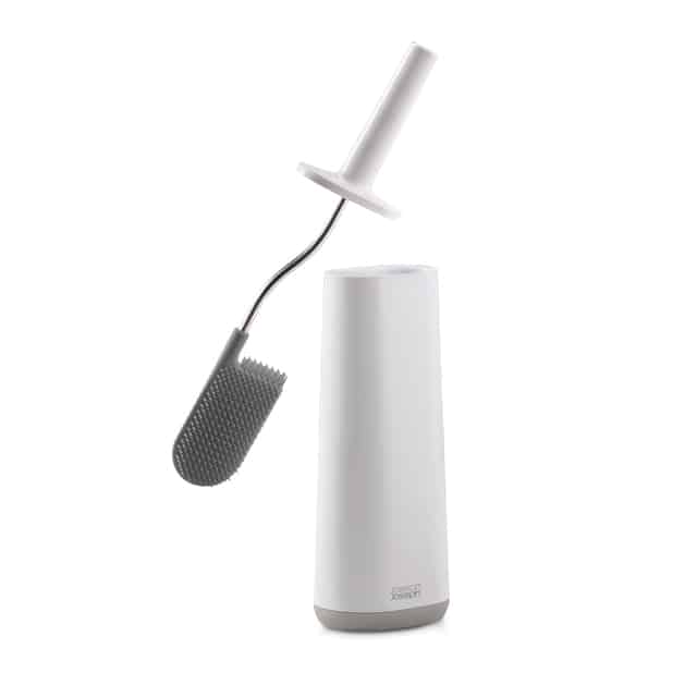 Herkömmliche Toilettenbürsten nehmen Schmutz und Flüssigkeit auf, was ihre Benutzung und Reinigung unhygienisch macht. Außerdem können sich ihre Borsten verformen und abnutzen, so dass sie regelmäßig ersetzt werden müssen. Flex ist eine revolutionäre Toilettenbürste, die all diese Probleme lösen soll. Sie verfügt über einen flexiblen, D-förmigen Kopf, der alle Bereiche erreicht, sogar unter dem Rand. Die weit auseinander stehenden Borsten verhindern das Verstopfen mit Schmutz, lassen die Flüssigkeit schnell ablaufen und sind haltbarer als herkömmliche Borsten. Flex wird außerdem mit einem schlanken Halter für eine saubere Aufbewahrung geliefert.
