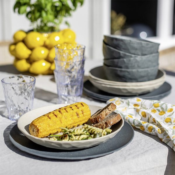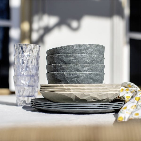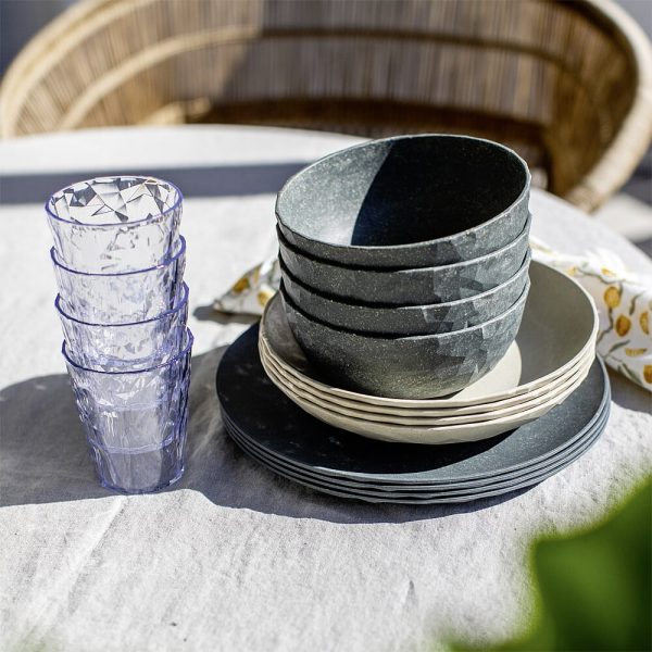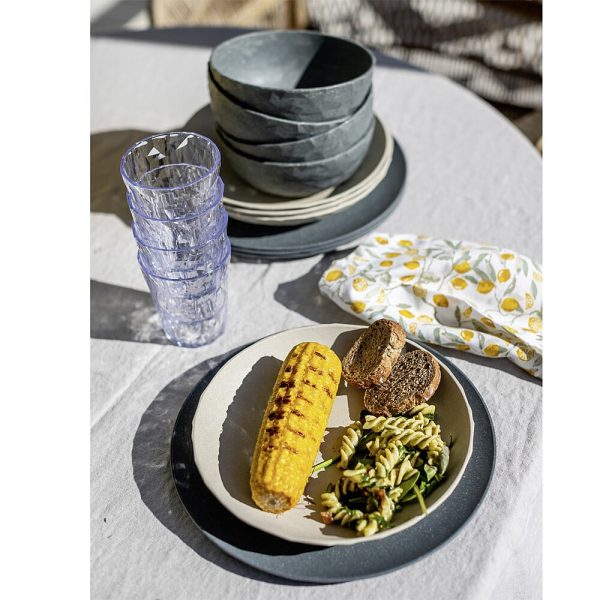 Das universelle Geschirr für Picknicks, Camping und alle Anlässe, die vorzugsweise draußen stattfinden. Die facettierten Teller sind wie eine frische Sommerbrise beim Outdoor-Lunch und vermitteln jederzeit und überall das gute Gefühl hochwertigen Dinierens. Die kompakte Schale hat genau die richtige Größe für die angesagten Bowl-Rezepte und macht auch für Obst, Salate, Nachtisch oder Suppen was her. Das Material bleibt lange schön und ist natürlich spülmaschinenfest.