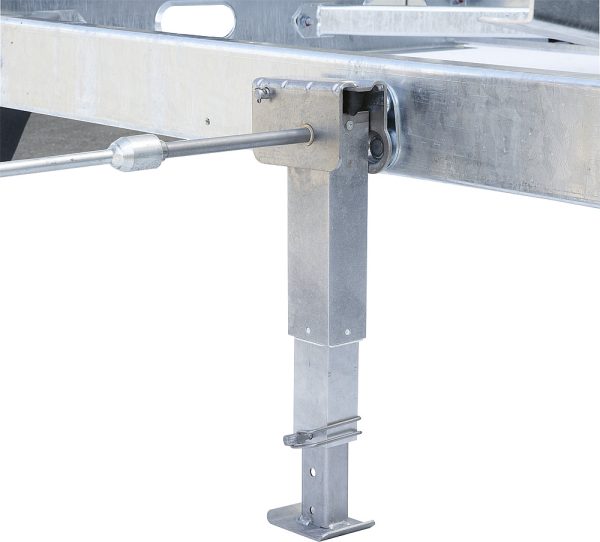 Für zusätzliche Sicherheit sorgt ein Freischwenkmechanismus, der dafür sorgt, dass die Hubstützen im ausgefahrenen Zustand automatisch nach vorne oder hinten schwenken. Somit werden Schäden am Fahrzeug vermieden.