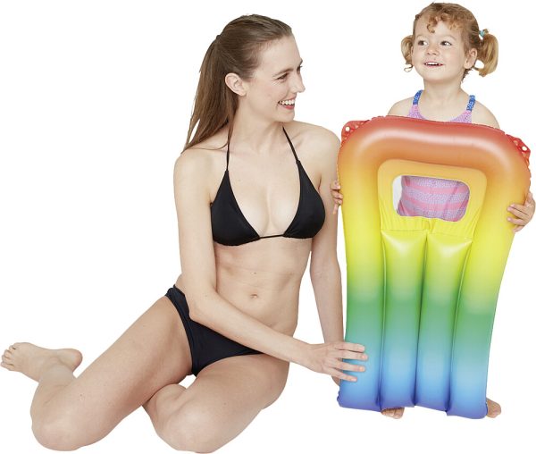 Mit Sichtfenster, Aufgeblasen ca. 67 x 43 cm, Oberseite mit Regenbogenfarben.
