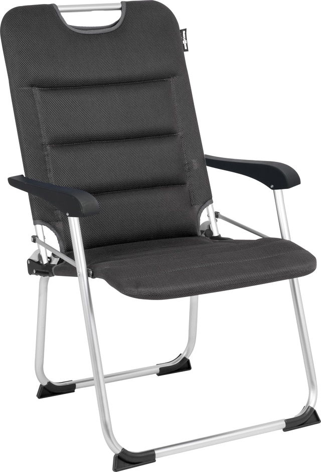 Ultrakompakter und leichter Outdoor-Stuhl. Mit seinem klappbaren, U-förmigen Gestell ist dieser Stuhl perfekt für Ihre Campingausflüge. Mit einem Gewicht von nur 2,8 kg ist er leicht zu transportieren und bietet einen hohen Sitzkomfort. Ausgestattet mit einem neu entwickelten, automatischen Verriegelungsmechanismus, der die Hinterbeine für zusätzliche Stabilität automatisch arretiert. Er ist ideal für Camper, Van-Besitzer und alle, die gerne Zeit in der freien Natur verbringen und nur wenig Stauraum haben. Innovatives automatisches Sicherheitsverriegelungssystem für den Brunner Sangria NG Klappstuhl. Dieses fortschrittliche Mechanismus sorgt dafür, dass das hintere Stuhlbein sicher verriegelt ist und ein unbeabsichtigtes Zusammenklappen, das ein Sturzrisiko darstellen könnte, verhindert wird. Mit dem Fokus auf die Sicherheit der Nutzer enhält diese Funktion Stabilität und Vertrauen bei der Nutzung des Stuhls. Genießen Sie Sicherheit und Funktionalität mit dem Brunner Sangria NG.