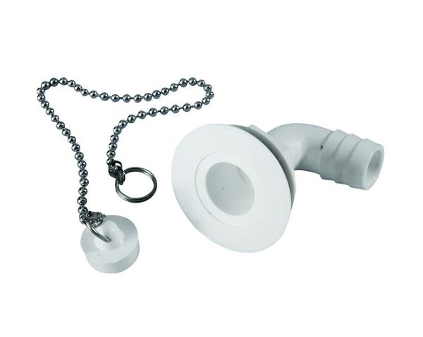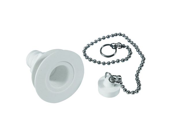 Ablaufventil gerade mit Dichtung, Stopfen und Kette.