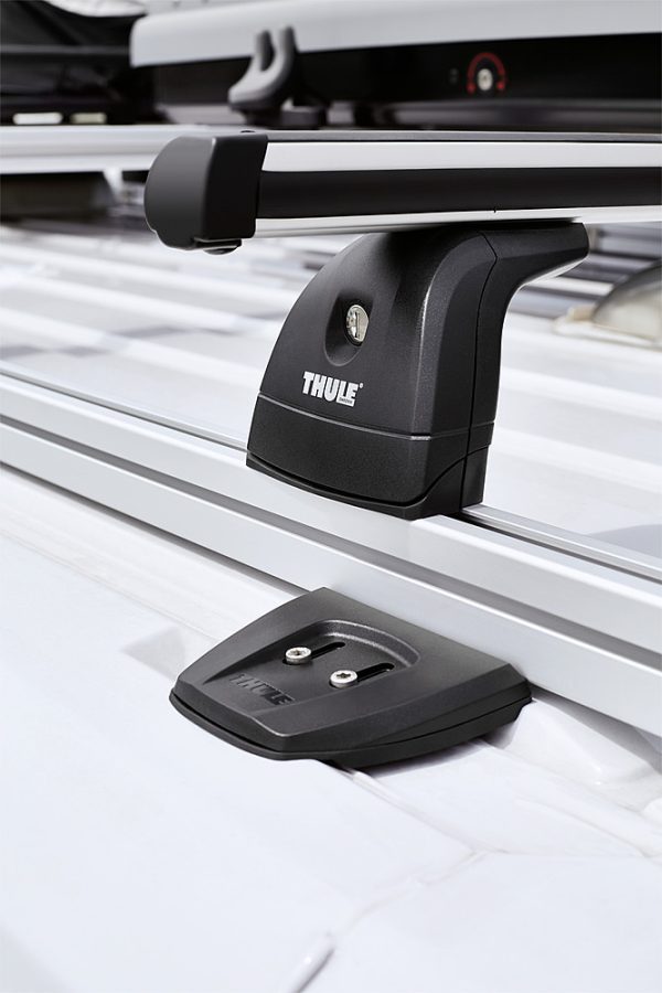 Die neuen Smart-Clamps können leicht an den bestehenden Fixpunkten des Transporters befestigt werden, ohne zusätzliche Bohrungen. Perfekte Integration zum Fahrzeugdach. Zusätzlich werden die Längsschienen mit dem Dach verklebt um die flexible Anbringung der Lastenträger zu ermöglichen.