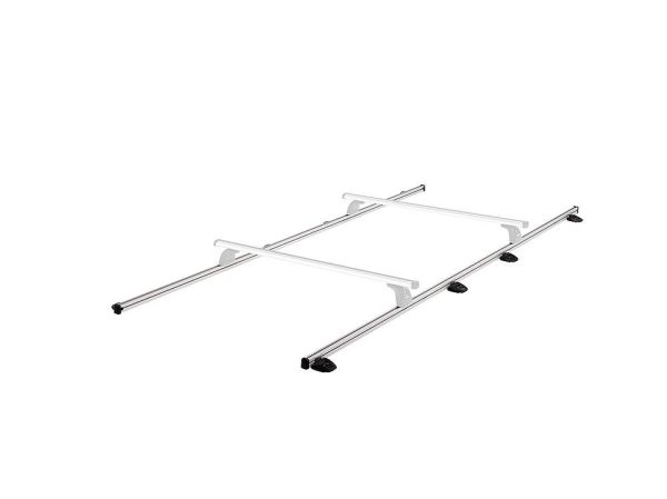Auf den beiden Längsschienen aus stabilem Aluminium können zwei (oder mehr) Lastenquerträger flexibel positioniert werden. Dadurch kann man die Beladung optimal an die Position von Dachaufbauten anpassen.