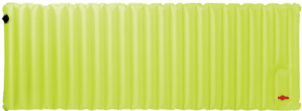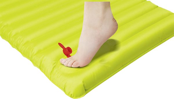 Outdoor Einzel-Luftbett mit horizontalen Luftkammern und integrierter Fußpumpe.