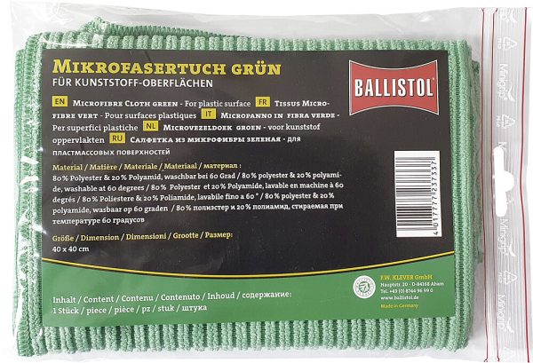 Premium Mikrofasertuch BALLISTOL für Kunststoff-Oberflächen grün 40 x 40 cm