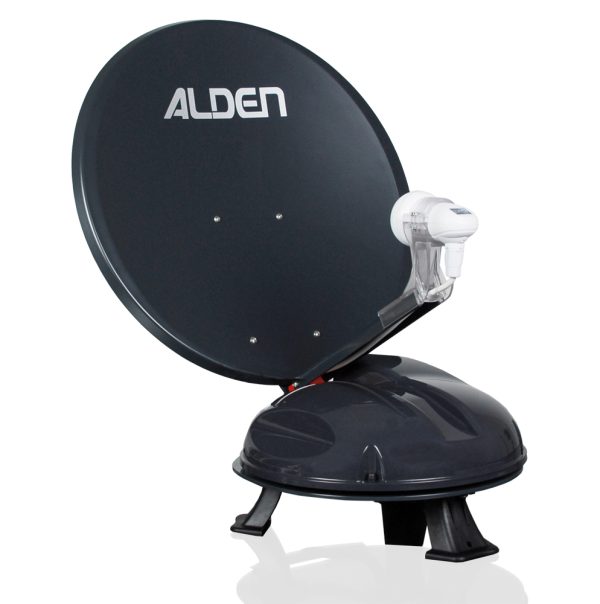 Die neue mobile vollautomatische Alden Satlight-Track 50 bietet eine für eine portable Anlage einzigartige Empfangsreichweite. Flexibel wird sie außerhalb des Fahrzeugs gestellt und mit nur einem Tastendruck auf den gewünschten Satelliten ausgerichtet.