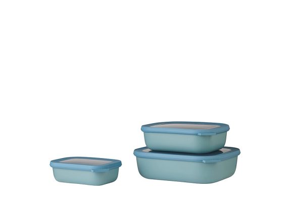 Mit diesem Mepal Multischüssel-Set Cirqula rechteckig hast Du einen wahren Alleskönner im Haus. Dieses 3-teilige Set enthält flache Schüsseln in den Größen von 500 ml, 1000 ml und 2000 ml. Die Cirqula Schüsseln können zum Aufbewahren, Einfrieren und zum Aufwärmen von Lebensmitteln in der Mikrowelle verwendet werden. Aufgrund ihrer Form kannst Du in der Cirqula rechteckig Deine Speisen nun im Kühlschrank und Tiefkühler platzoptimiert aufbewahren. Die Mepal Cirqula Multischüsseln bestehen aus unzerbrechlichem Material. Der luft- und aromadichte Deckel ermöglicht mit seinem Sichtfenster einen Blick auf den Inhalt. So weißt Du immer, was Du noch auf Vorrat hast. Nach Gebrauch können die Multischüsseln ganz einfach in der Spülmaschine gereinigt und danach mit Deckel platzsparend ineinander gestapelt werden. Für noch mehr Platz im Küchenschrank!