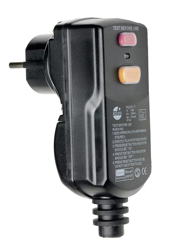- Spannung 230 V/16 A, 30 mA, – IP44