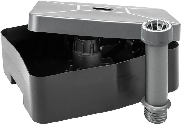 Fahrbarer Schirmständer zur Befüllung mit bis zu 45 kg Sand, Mit 2 integrierten Laufrollen und Griffmulde, für Schirmrohre mit Ø 30 – 50 mm.