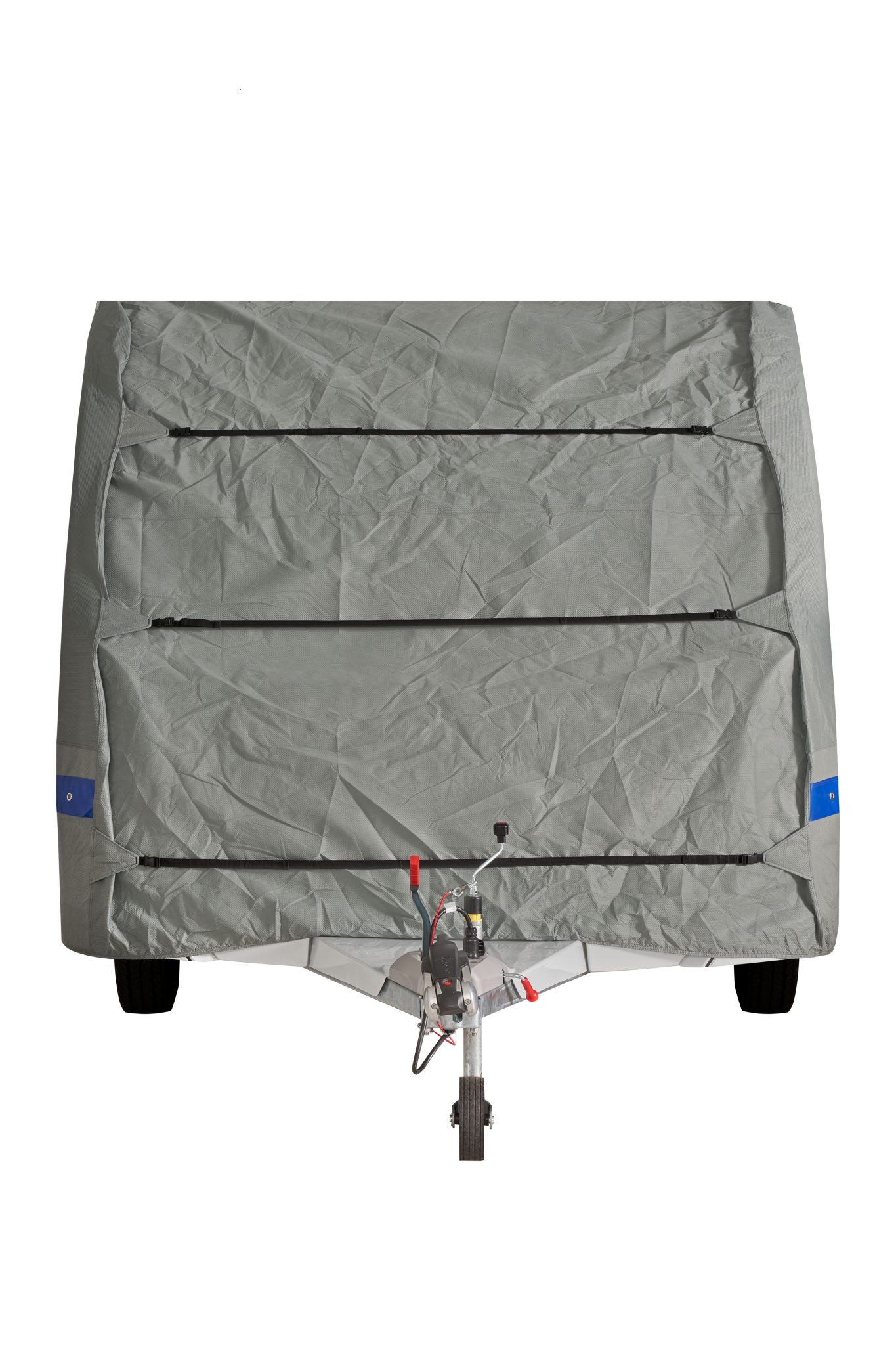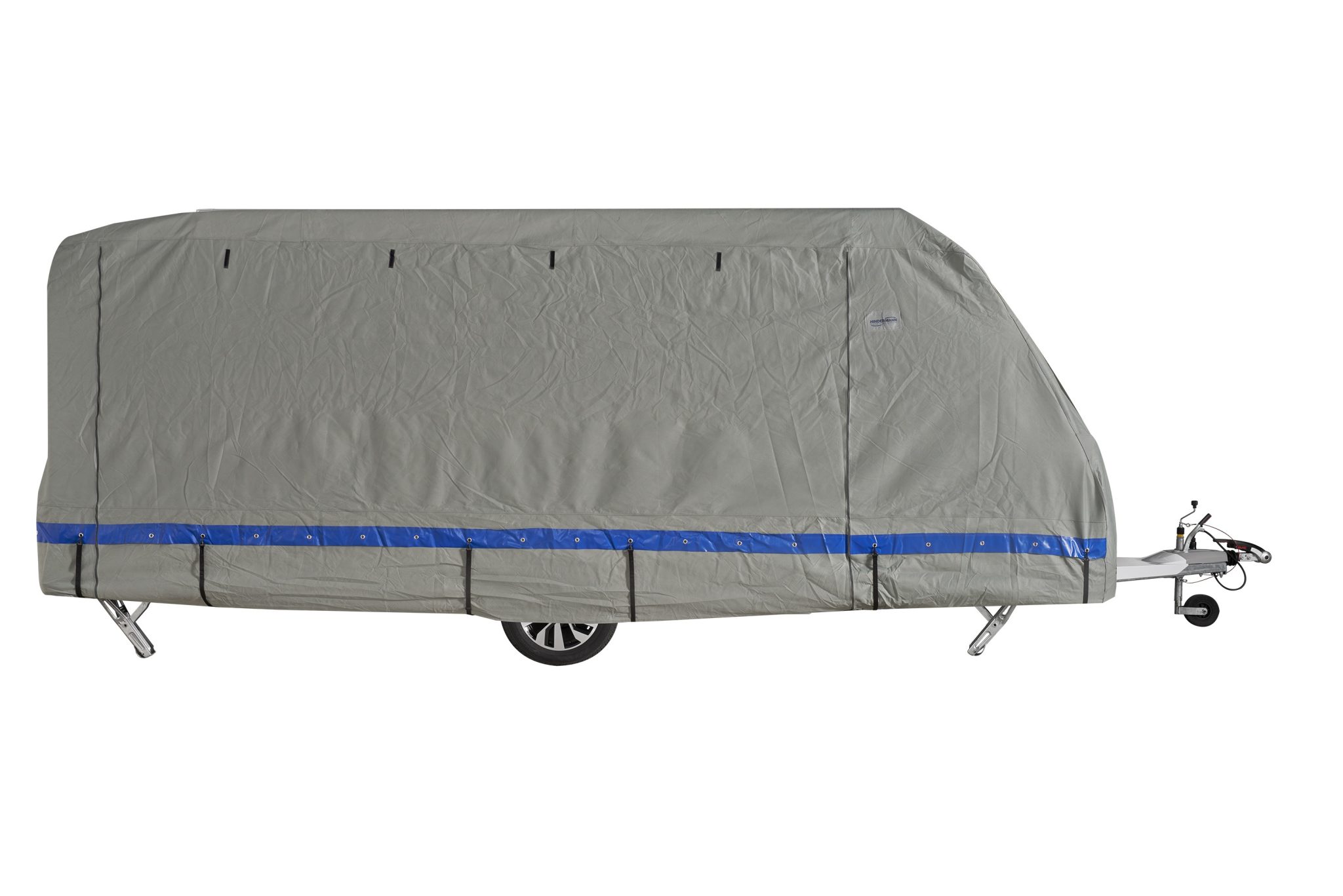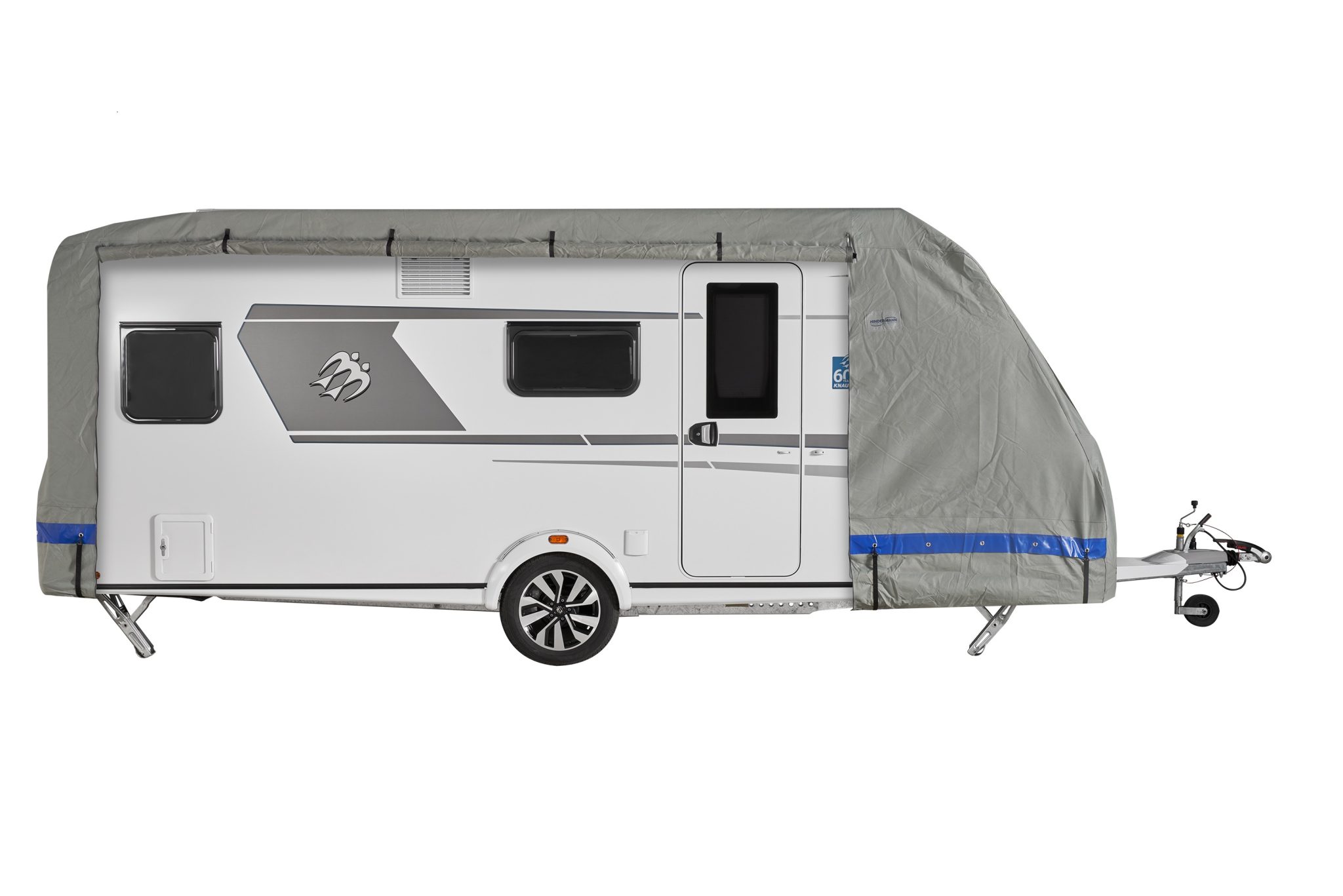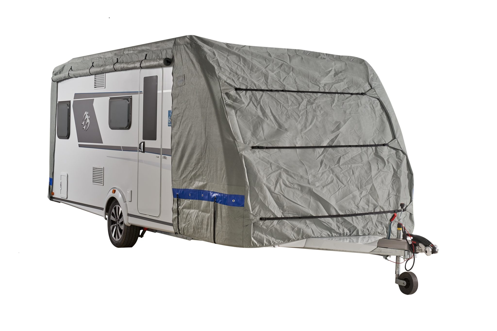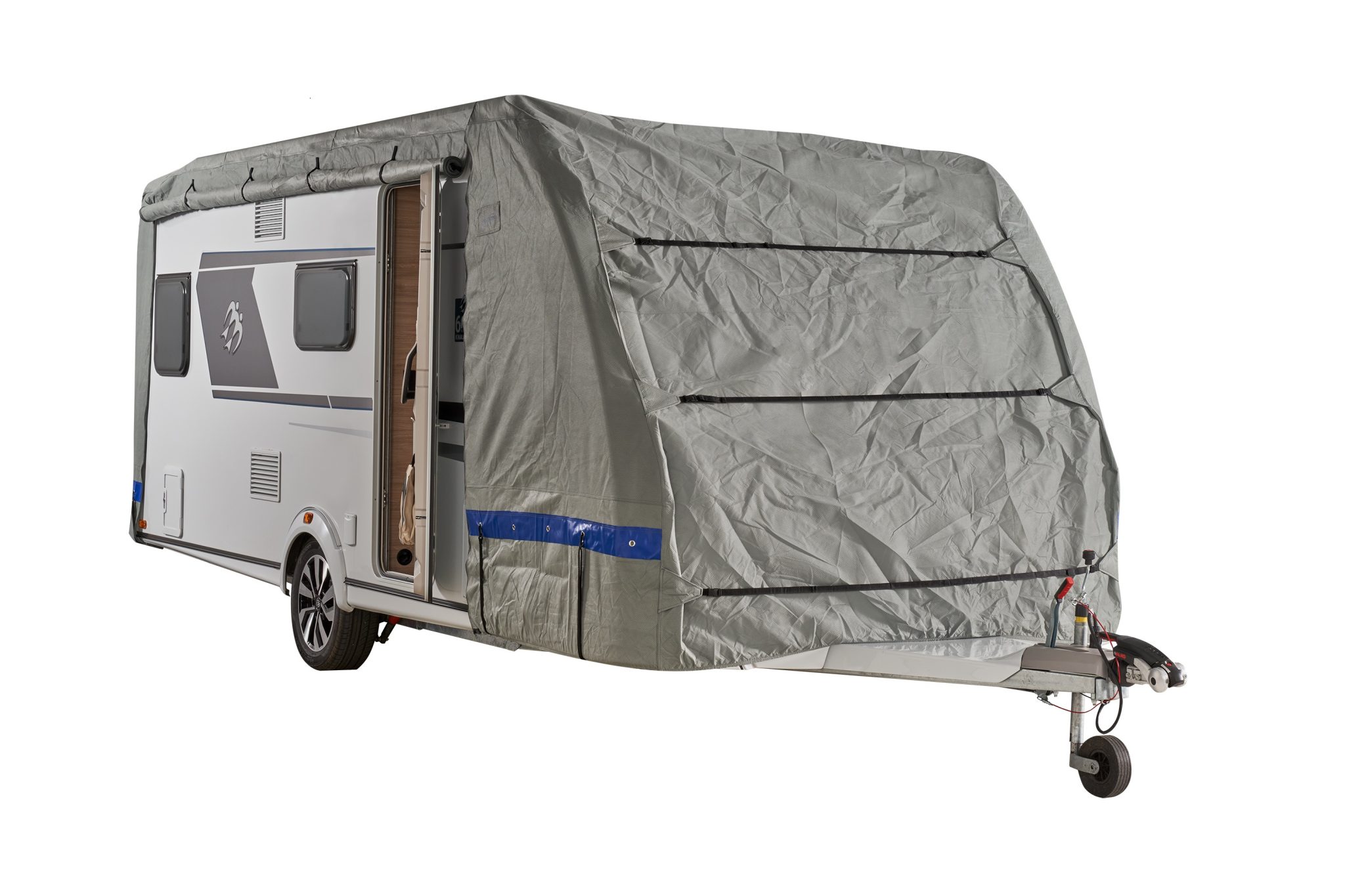 Für Reisemobile gibt es alleine 3 Grundformen die den unterschiedlichen Konturen, Aufbaubreiten und Aufbauhöhen von Integrierten, Kompaktintegrierten, Teilintegrierten sowie Alkovenfahrzeugen gerecht werden. Jede Schutzhülle verfügt über 4 Reißverschlüsse die (geöffnet) das Überziehen sowie Abnehmen erleichtern und einen Zugang zur Eingangstür bzw. Staukästen auf der linken Fahrzeugseite ermöglichen. Alle Schutzhüllen verfügen beidseitig über eine Ösenleiste sowie Spannlaschen an Front und Heckseite.