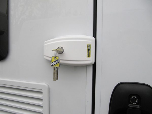 | Sicherheitsinformationen | Wichtige Hinweise zum Betrieb unserer Türsicherungen HEOSafe®: 1. Achten Sie darauf, dass der Riegel der Türsicherungen HEOSafe® im geöffneten Zustand einer Tür nicht durch spielende Kinder oder aus Versehen betätigt wird. Sonst stößt nämlich beim Schließvorgang der Riegel gegen den Rahmen oder den Arretierbolzen und kann Beschädigungen hervorrufen. 2. Achten Sie darauf, dass sich Kinder oder Personen mit Behinderungen nicht einsperren, während sich diese alleine im Fahrzeug aufhalten. Lassen Sie in diesem Fall zur Sicherheit eine andere Tür (Fahrerhaustür, Hecktür) offen. 3. Wenn Sie sich im Fahrzeug befinden, dürfen die Fluchttüren nicht von außen zusätzlich mit HEOSafe® gesichert werden, weil bei Außenschlössern ein Öffnen von innen nicht möglich ist. 4. Bitte prüfen Sie vor jedem Öffnen der Schiebetüre unbedingt, ob der Schlüssel aus dem HEOSafe®–Schloss abgezogen ist, da dieser sonst abbrechen kann! 5. Während der Fahrt sollten Sie die HEOSafe® Türsicherungen nicht verriegeln, um im Fall eines Unfalls den Rettungskräften Zugang in das Fahrzeug zu ermöglichen. |