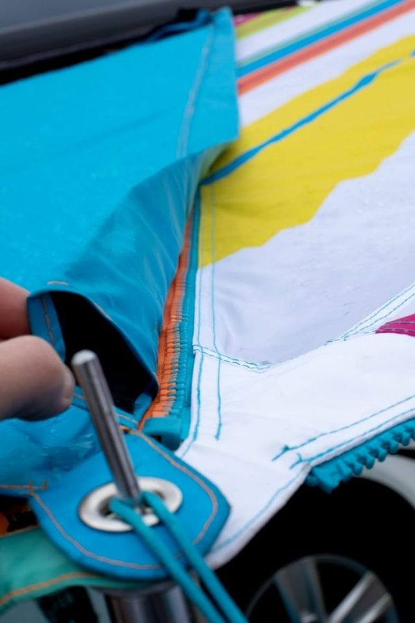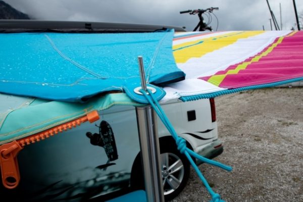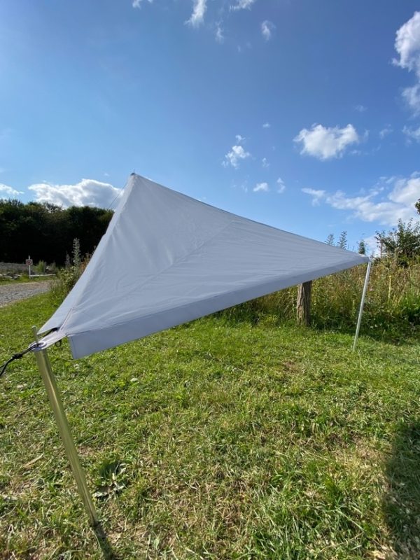 | Lieferumfang | Inklusive 1 Sonnensegel, 1 Tragetasche mit Kordelzug, 3 Abspannleinen mit Aluminium Dreilochspanner inkl. Beutel, Gestänge-Tasche und Grundplatte für |
