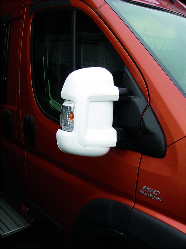 Spiegelprotektorsatz zur einfachen Montage am linken und rechten Außenspielgel bei teilentegrierten Reisemobilen und Alkovenfahrzeugen auf Basis Fiat Ducato X250. Die Protektoren schützen die Spiegel vor Beschädigung durch Kontakt mit Gegenverkehr, à„sten oder Verkehrsschildern. Einfache und sichere Montage durch perfekte Passform und verschraubtem Halter. Keine Bohrungen oder Verschraubungen im Originalspielgel notwendig.