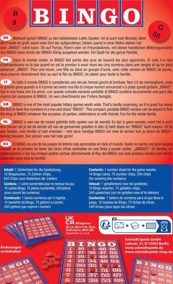 Mit 10 Bingokarten, 75 Zahlenchips, 240 Chips und einer Zahltafel für den Bankhalter ist dieser amerikanische Klassiker ein echter Volltreffer.