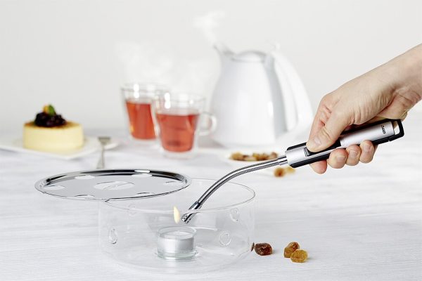 Nachfüllbares Gas-Stabfeuerzeug mit flexiblem Flammengeber aus Metall, größenregulierbarer Flamme und Piezo-Zündung. Der flexible Flammengeber ermöglicht das Zünden Ihrer Flamme auch an unzugängliche Stellen.