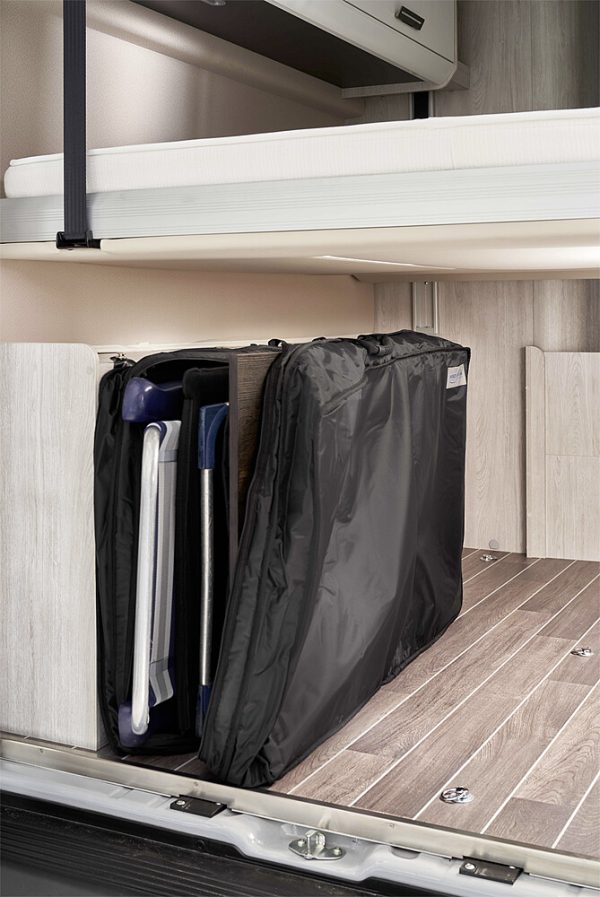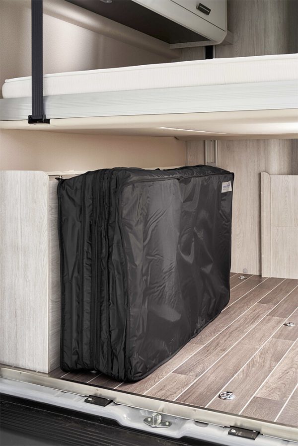 Gleich und gleich gesellen sich gerne und doch gibt es Unterschiede. Die neue STAURAUMTASCHE PREMIUM verfügt über 2 gepolsterte Unterteilungen (alternativ: Inneneinteilungen) so dass 3 Möbelteile getrennt voneinander und geschützt auf die Reise gehen können. Die Standardversion, ohne die Unterteilungen, verfügt hingegen über eine zusätzliche Staumöglichkeit durch eine außen angebrachte Netztasche. Diese ist lediglich eingehängt und kann problemlos entfernt werden. (In der Verpackung lose beigelegt)