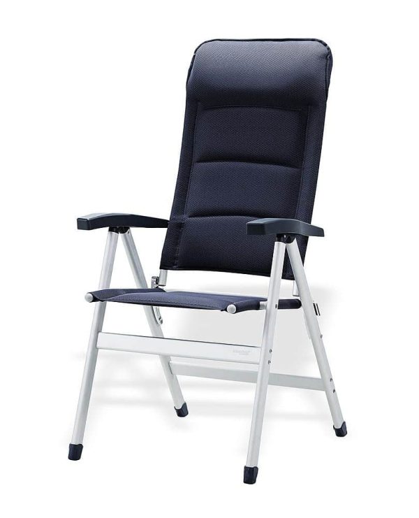 Der Pioneer Stuhl wurde weiter verbessert. Der verlängerte Sitzbezug bietet zusätzlichen Halt und noch mehr Komfort. Sowohl Sitzbezug als auch Rückenlehnen Bezug sind mit einem gepolsterten Duradore Soft Touch Gewebe 2D-Mesh ausgestattet. Ein in der Dicke verstellbares Kopfkissen ist in die Rückenlehne integriert. Der innen verstärkte Aluminiumrahmen ist vollständig eloxiert und macht diesen Stuhl nicht nur bequem, sondern auch stark und haltbar. Die Rückenlehne ist 7-fach verstellbar, die Sitzfläche verlängert.