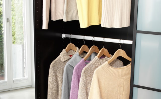 Die Teleskopstange passt sich individuell der Schrankbreite an. Ausziehbar von 58 – 100 cm.