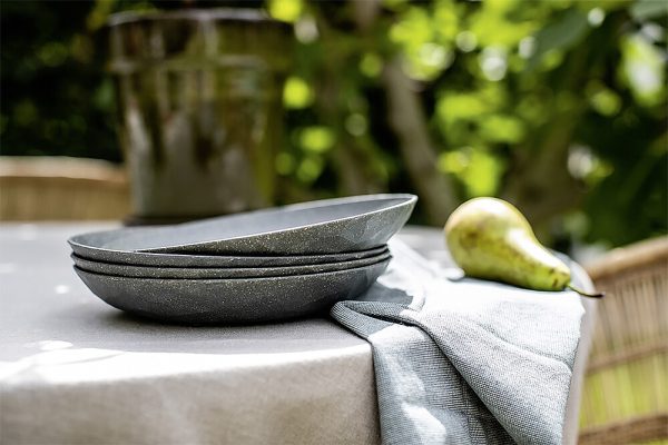 Der universelle Teller für Gartenfeste, Picknicks oder Glamping und alle Anlässe, die vorzugsweise draußen stattfinden. Die Außenseite trägt eine lebendige Facettenstruktur und seine solide Qualität und breite Standfläche vermitteln jederzeit und überall das gute Gefühl hochwertigen Dinierens. Ideal für alle Outdoor-Aktivitäten, bei denen man auf stilvolles Geschirr keineswegs verzichten möchte. Aus thermoplastischem Kunststoff mit Holz.