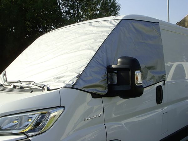 Eis- und Sonnenschutz Fahrerhausscheiben Fiat Ducato, Citroen Jumper und Peugeot Boxer Mod. ab 2006 und ab 2014. Minimales Packmaß, leichte Anbringung.