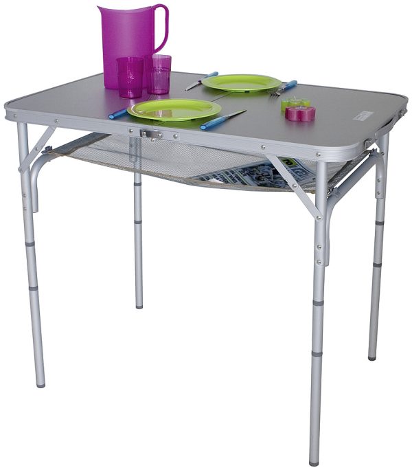 Tisch Eurotrail Monnai mit Netzablage Alu Farbe grau