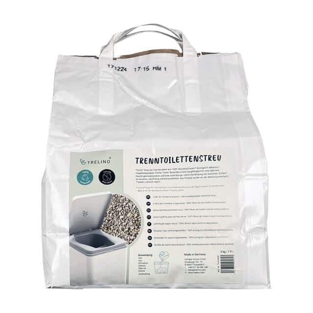 Trelino® Trenntoilettenstreu aus Weichholzfasern* ist die ideale Lösung zur Abdeckung der Feststoffe in Deiner Trenntoilette. Das hochwertige Produkt wird hauptsächlich aus Fichten- und Tannenholz hergestellt und zeichnet sich durch seine besonders hohe Saugfähigkeit aus. Es überzeugt durch eine optimale Feuchtigkeitsabsorption und bindet auf natürliche Weise zuverlässig Gerüche. Die Streu lässt sich einfach dosieren, ist nachhaltig und vollständig kompostierbar. Ein besonderer Vorteil: die Streu ist ein echter Softie. Dank der abgerundeten Körnung ist gibt es keine spitzen Fasern, die den Beutel in Deiner Trenntoilette beschädigen könnten. Um Staubbildung zu minimieren, wurde das Produkt vor der Abfüllung sorgfältig entstaubt. Für eine optimale Haltbarkeit empfehlen wir eine trockene und kühle Lagerung.