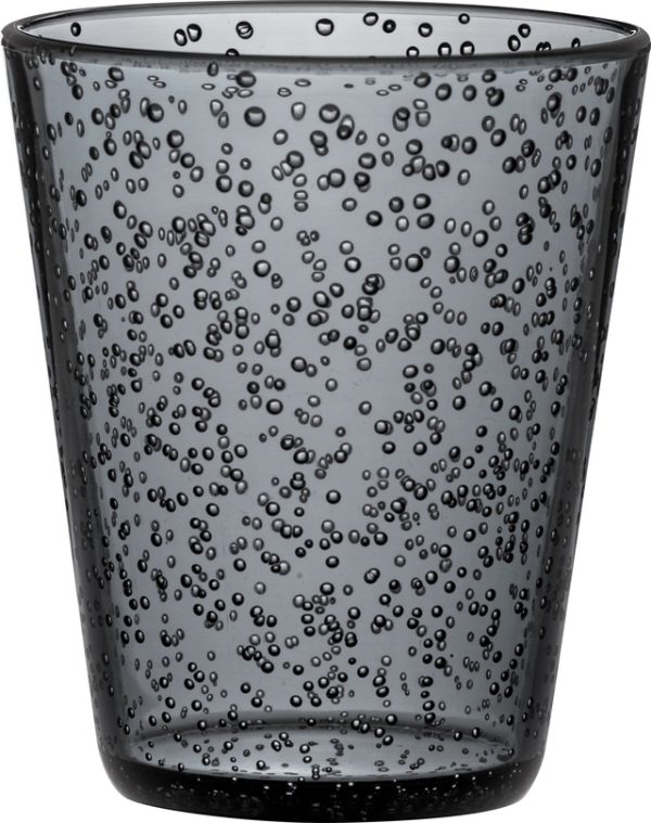 Stapelbares Trinkglas aus praktischem MS-Material. Trendiges Design mit Luftbläschenoptik.