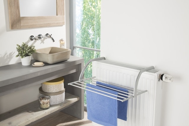 Idealer Wäschetrockner für Balkon, Heizung, Badewanne, Dusche, Camping etc. Flexibel einsetzbar: verstellbare Arme erlauben eine Anpassung an jeden Heizkörper, Balkonbrüstung oder Badewanne -Trocknen ohne Abdrücke auf der Wäsche dank besonders dicker Trockenstäbe. Flach zusammengefaltet einfach und platzsparend zu verstauen. 3 m Trockenlänge. Rostfrei. Made in Germany.