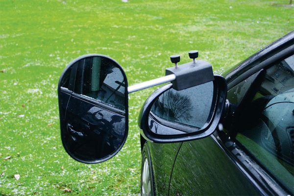 Der Wohnwagenspiegel wird mit zwei Schrauben ohne Werkzeug montiert.
