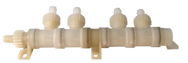 Verteiler mit 4 Abgängen komplett mit Mutter und Befestigungsfuss frostsicher