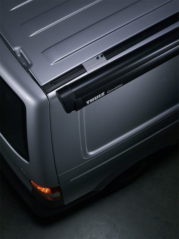 Speziell konzipierte Wandmarkise für den VW T5 (Multivan/Transporter). Durch das einzigartige Schnellstecksystem kann die Markise innerhalb kürzester Zeit an- bzw. abgenommen werden. Die Montage erfolgt mit Hilfe der im Lieferumfang befindlichen Spezialadapter an die schwarze original Dachschiene.