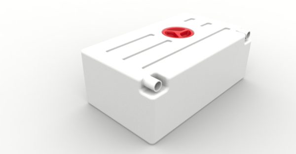 Wassrtank mit Reinigungsöffnung ภ12 cm. In den Tank eingearbeitet (keine Vorsprünge) sind 2 Einfüllstutzen ภ4 cm. Die Stutzen sind bei Lieferung verschlossen und können bei Bedarf geöffnet werden.