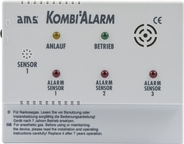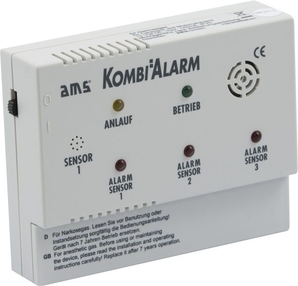 Le double système d’alarme pour gaz et gaz anesthésiques. Système d‘alarme autonome avec émetteur de signal acoustique et détecteur incorporé (85 dB).