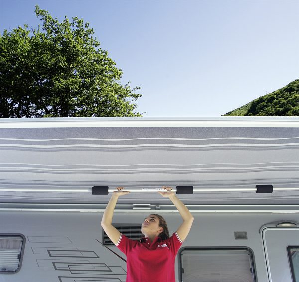 Barre de tension universelle en aluminium pour une tension transversale de la charnière et du tissu de store. Montage facile entre les bras articulés du store (pas seulement Fiamma).